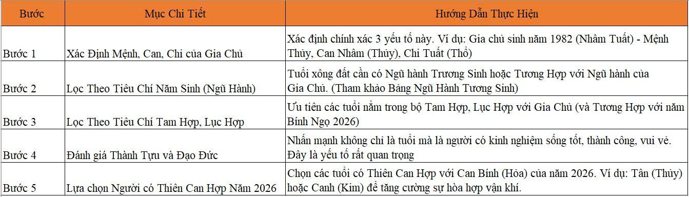 Sử dụng 5 bước sau để dễ dàng chọn tuổi đẹp xông đất 2026 cho riêng bạn: